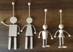 Můžete si zhotovit jak naši malou dřevěnou loutku, tak nejjednodušší loutkovou variantu, naši placatou a 3D loutku, obě ve variantě kluk - holka.